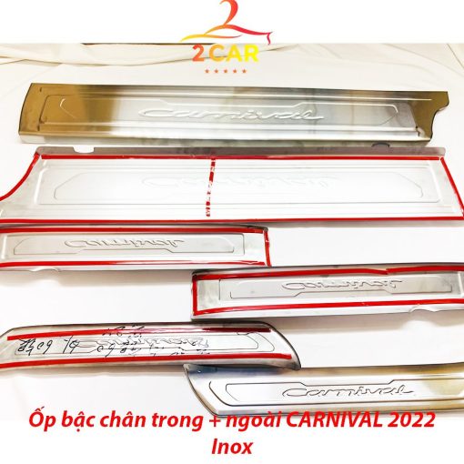 Ốp bậc cửa, Nẹp bước chân trong ngoài xe Kia CARNIVAL 2021- 2022, chất liệu Inox cao cấp